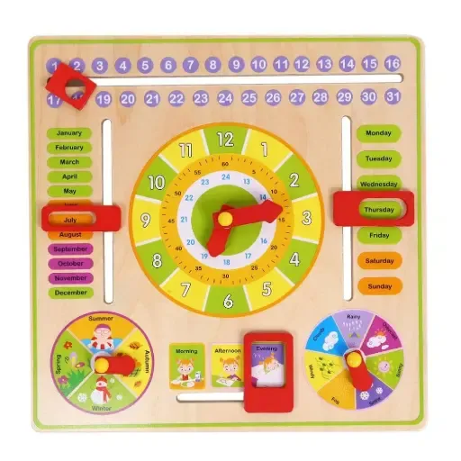 CurioSparks Wooden Learning Calendar & Clock Board – Montessori Weather, Seasons & Daily Routine Educational Toy